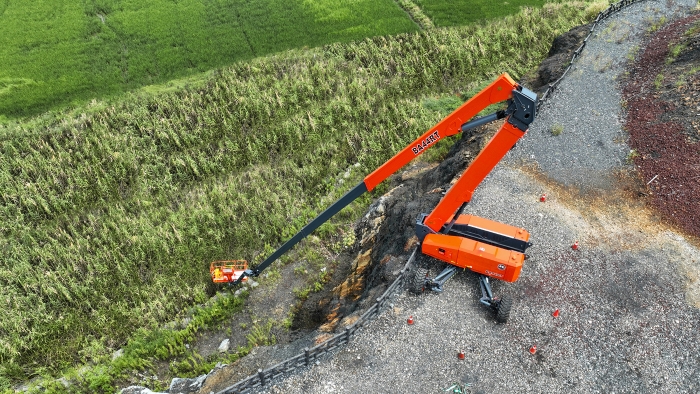 但其實,除了高度外,還有一項參數(shù)常常被人所忽視,那就是曲臂特有的下探本領(lǐng)。鑒于曲臂結(jié)構(gòu)的特殊性,它不僅可以“上天”,還特別能“入地”——尤其是應(yīng)對那些需要深度下探的復(fù)雜工況,比如礦坑作業(yè)、陡坡作業(yè)等。